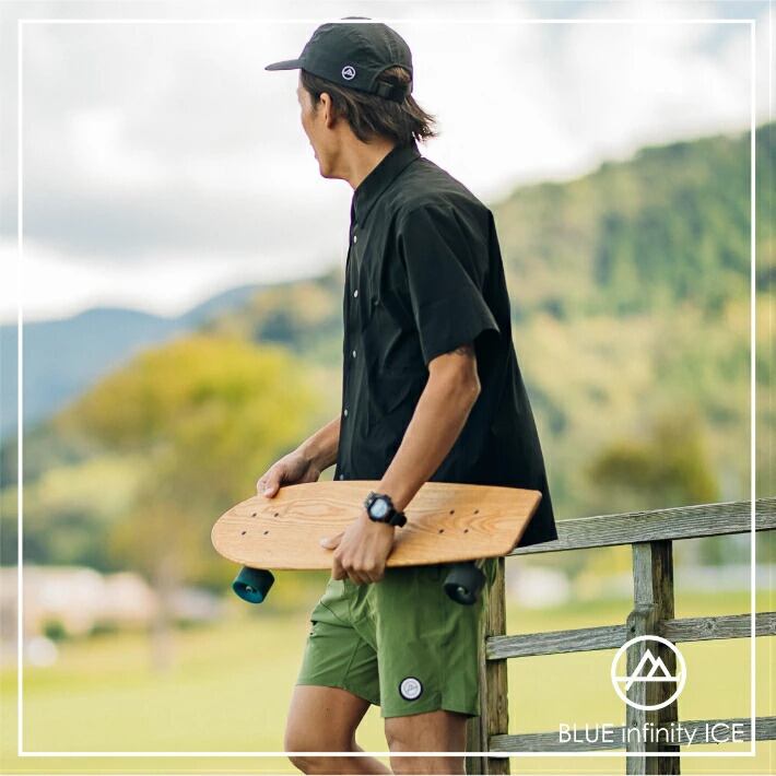特徴:ストレッチ性のあるナイロン素材を使用したハーフスリーブシャツです。